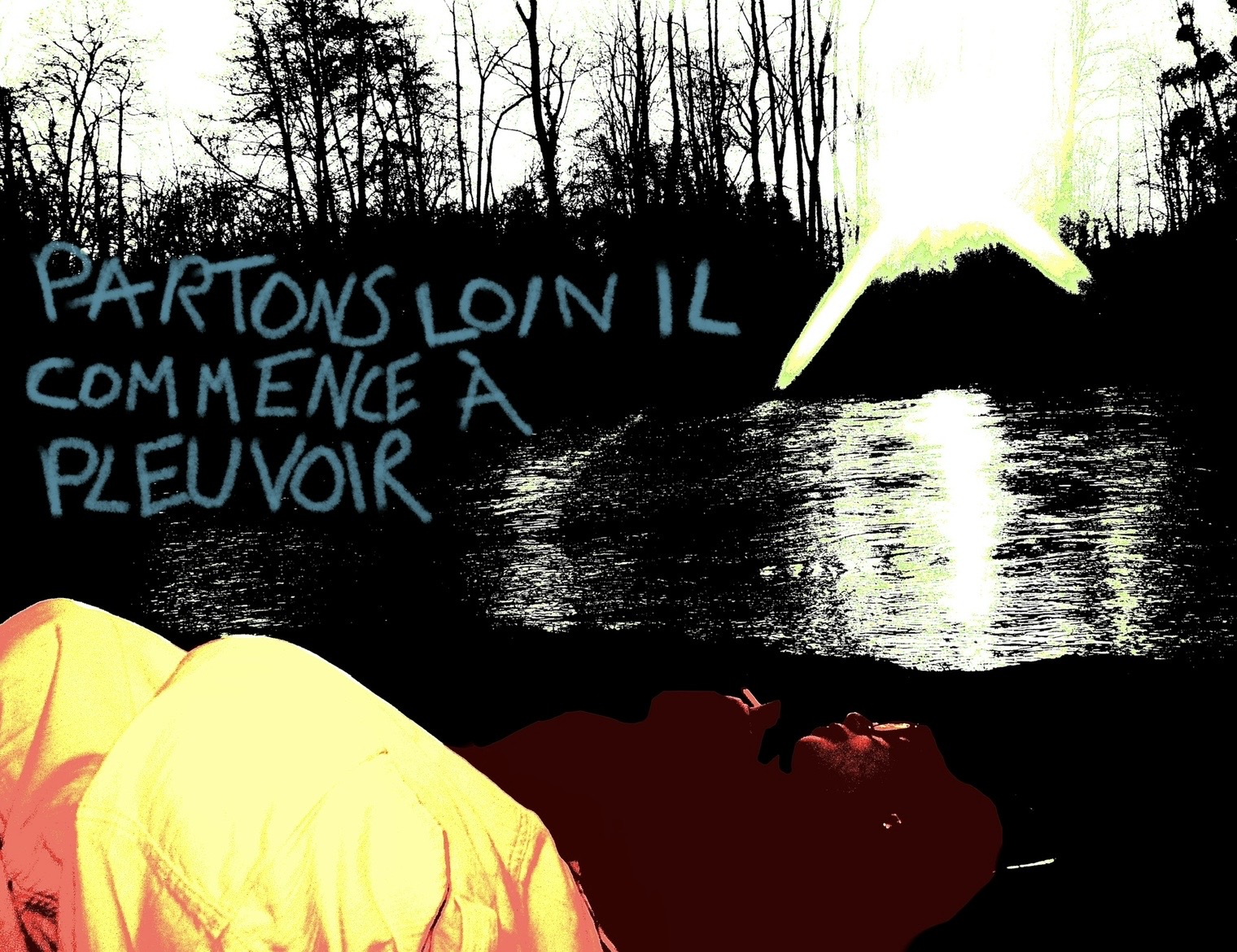 Photo prise avec un appareil photo canon argentique, lors d’une sortie au lac, on a peins avec ma copine, je voulais immortaliser l’instant qui était si beau avec cette belle nature en fond.Ensuite j’ai modifié les couleurs de l’image, la saturation et le contraste, pour la rendre plus à moi, mon style, j’ai ensuite écrit par dessus une phrase, qui m’est venue, qui me faisait sens, et qui j’espère fera autant sens au spectateur.