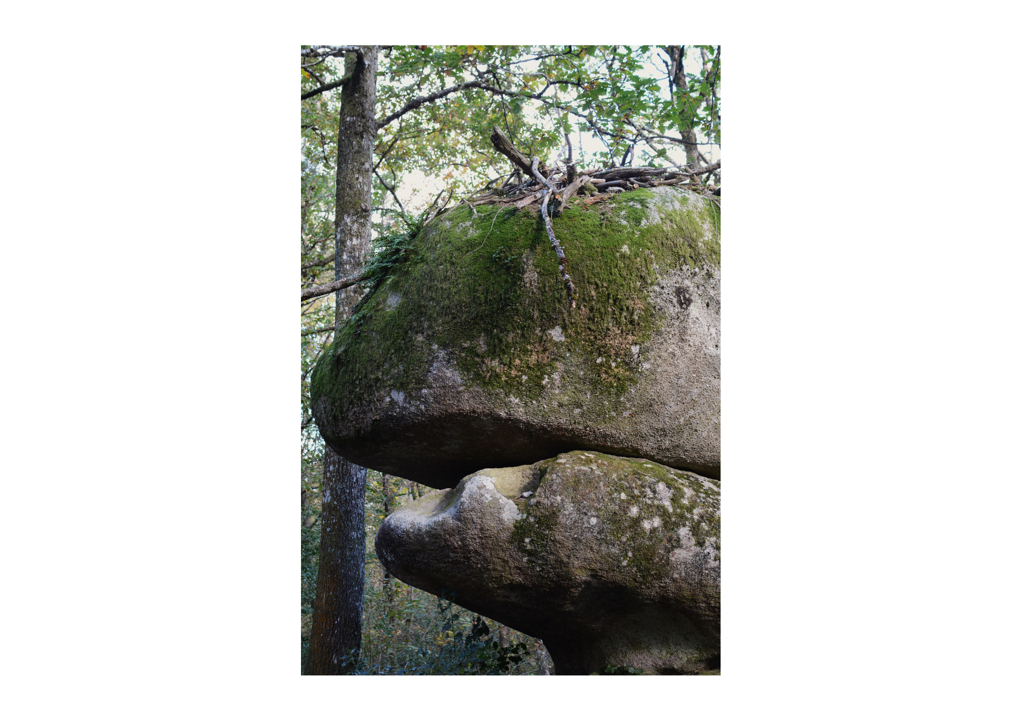 Sans être à l'affut de rencontres inédites, j'ai néanmoins l'habitude d'aller marcher avec mon appareil photo autour du cou, pour saisir les lumières, les feuillages, les êtres aperçus au détour du chemin. C'était sans but précis, si ce n'est celui de parcourir les bois du Sud-Ouest de la France, que j'ai fait la rencontre de cet être rocailleux, qui m'a immédiatement fascinée. Aux côtés de mon père, j'aiguise depuis l'enfance mon regard et mon imagination dans les milieux naturels, apprenant à me laisser surprendre par des personnages comme celui-ci. Je suis restée de longues minutes à l'observer, avant de me décider à faire son portrait avant que la lumière déclinante ne rompe le charme. Mon processus créatif, si je devais le décrire, serait donc celui du qui-vive, de l'attention portée à ce qui m'entoure, et de la curiosité que j'ai pour les lieux.