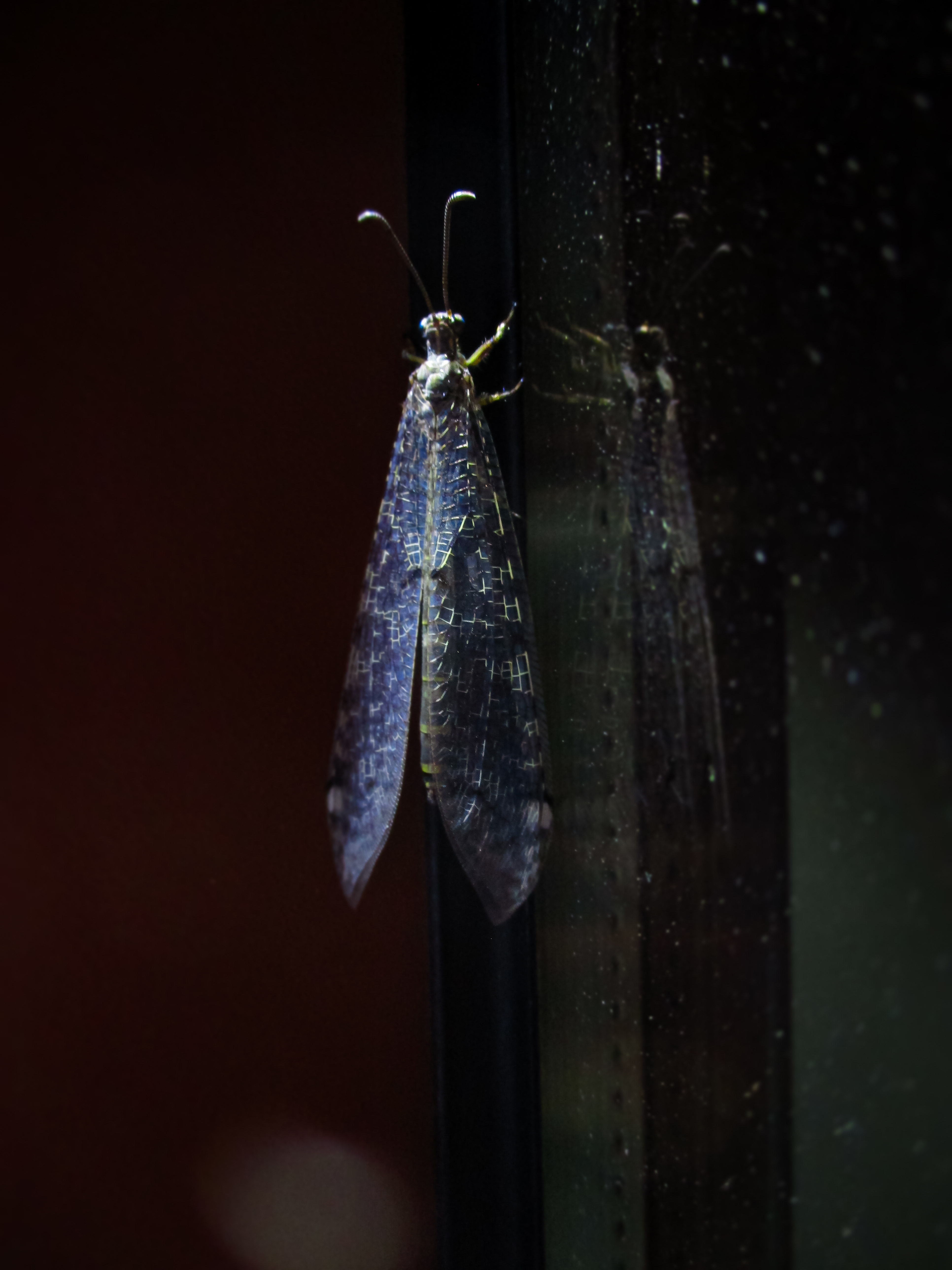 L’image est née d’un moment de disponibilité plutôt que d’une recherche préméditée.Le contraste entre l’obscurité ambiante, la lumière diffuse et la surface réfléchissante du verre a immédiatement suggéré un espace de tension visuelle, presque méditatif.En m’approchant avec lenteur pour ne pas troubler l’insecte, j’ai choisi un cadrage resserré et une profondeur de champ réduite afin d’isoler cette présence fragile du reste du monde.Le reflet, volontairement conservé, prolonge la forme et introduit une ambiguïté subtile entre réel et double, matérialité et apparition.L’intention n’était pas de documenter, mais de révéler:faire émerger la poésie silencieuse d’un instant ordinaire et inviter le regard à redécouvrir la richesse sensible de ce qui, d’ordinaire, demeure invisible.