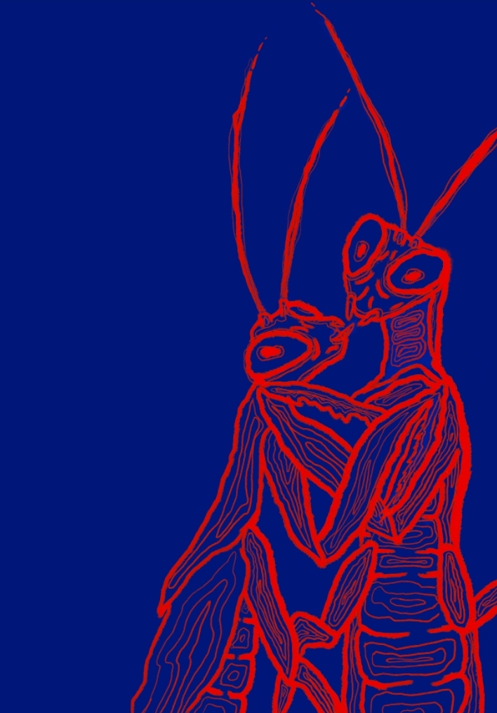 L’œuvre est une bande dessinée à la base et elle retrace l’histoire amoureuse désastreuse d'une manthe religieuse dans une grande ville. Je me suis inspiré de ce qui m’entourait et de mes proches afin d’amener du moderne dans la nature qui a une visée ancestrale.